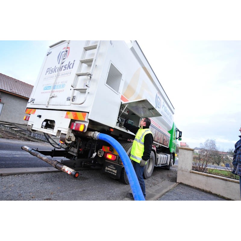 Livraison par camion souffleur équipé d’une pesée embarquée homologuée.